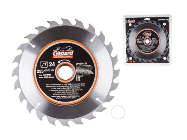 Главная » Оснастка к электроинструменту » Пилы и пилки » Пильные диски для циркулярных пил ф254-260мм » Диск пильный 255х32/30 мм 24 зуб. по дереву GEPARD (твердоспл. зуб)