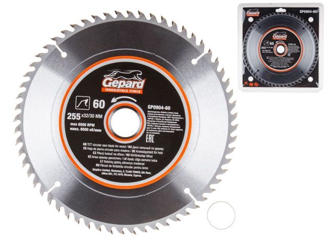Главная » Оснастка к электроинструменту » Пилы и пилки » Пильные диски для циркулярных пил ф254-260мм » Диск пильный 255х32/30 мм 60 зуб. по дереву GEPARD (твердоспл. зуб)