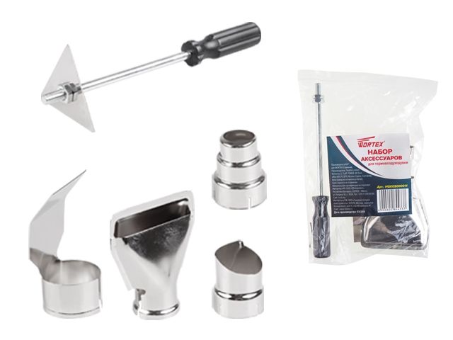 Главная » Оснастка к электроинструменту » Принадлежности для электроинструмента » Оснастка для термовоздуходувки » Набор аксессуаров для термовоздуходувки WORTEX (5 предметов (4 сопла + скребок))