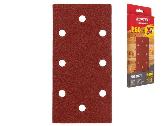 Главная » Оснастка к электроинструменту » Шлифование и полирование » Шлифлисты для виброшлифмашин » Шлифлист 90х187 мм Р60 д/дерева самосцепл. 8 отв. 5 шт. WORTEX (Подходит для использования к виброшлифмашине WORTEX SS 1920 E, SS 2230-1 E)