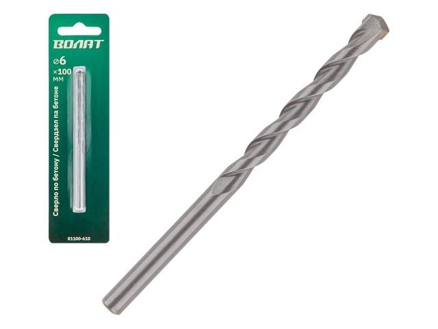 Главная » Оснастка к электроинструменту » Сверление » Сверла по бетону, камню цилиндрический хвостовик » Сверло по бетону 6х100мм ВОЛАТ (победитовое ударное)
