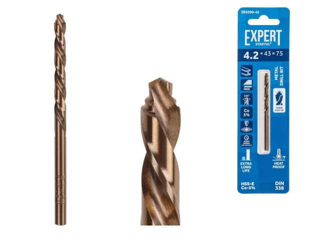 Главная » Оснастка к электроинструменту » Сверление » Сверла по металлу цилиндрический хвостовик EXPERT STARTUL » Сверло по металлу ц/х 4.2х43х75 мм HSS-Co EXPERT STARTUL (кобальт 5%)
