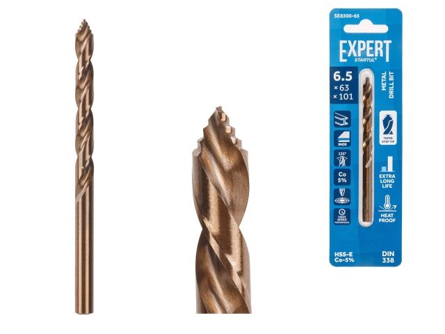 Главная » Оснастка к электроинструменту » Сверление » Сверла по металлу цилиндрический хвостовик EXPERT STARTUL » Сверло по металлу ц/х 6.5х63х101 мм HSS-Co EXPERT STARTUL (кобальт 5%)