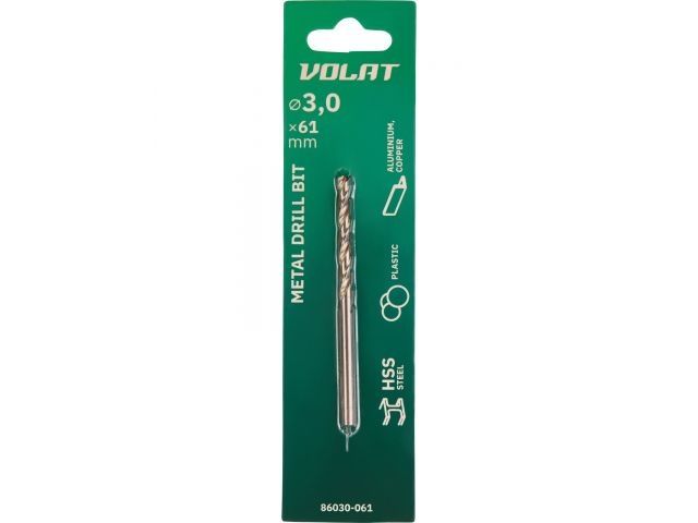 Главная » Оснастка к электроинструменту » Сверление » Сверла по металлу цилиндрический и шестигранный хвостовик ВОЛАТ » Сверло по металлу ц/х 3.0х33х61 мм HSS ВОЛАТ