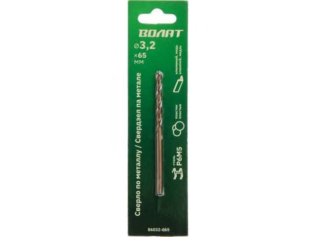 Главная » Оснастка к электроинструменту » Сверление » Сверла по металлу цилиндрический и шестигранный хвостовик ВОЛАТ » Сверло по металлу ц/х 3.2х36х65 мм HSS ВОЛАТ