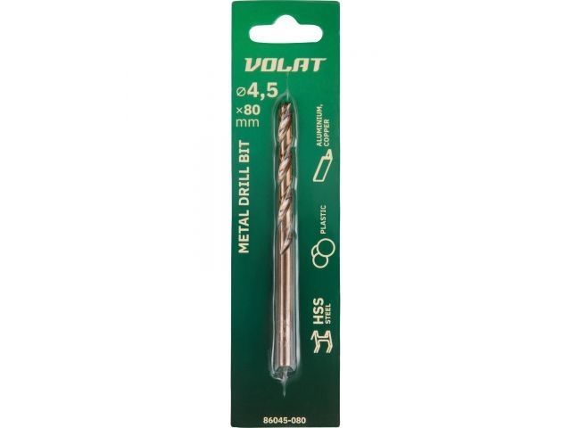 Главная » Оснастка к электроинструменту » Сверление » Сверла по металлу цилиндрический и шестигранный хвостовик ВОЛАТ » Сверло по металлу ц/х 4.5х47х80 мм HSS ВОЛАТ