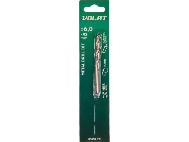 Главная » Оснастка к электроинструменту » Сверление » Сверла по металлу цилиндрический и шестигранный хвостовик ВОЛАТ » Сверло по металлу ц/х 6.0х57х93 мм HSS ВОЛАТ