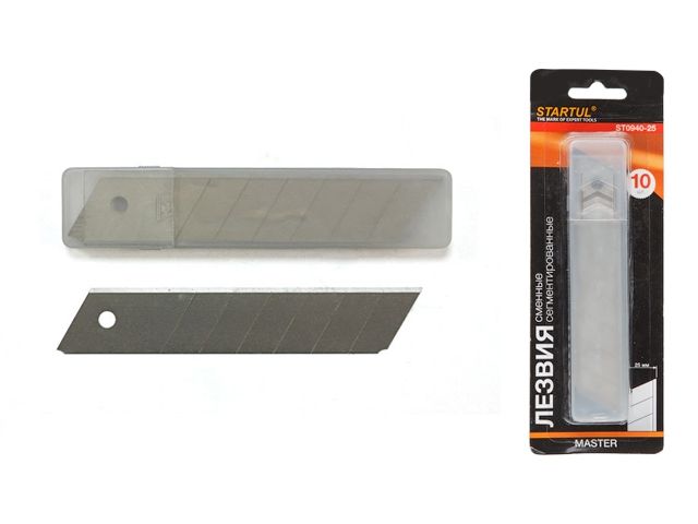 Главная » Ручной инструмент » Общестроительный инструмент » Лезвия » Лезвия сменные сегментированные 25мм 10шт STARTUL MASTER (ST0940-25) (лезвие для ножа)