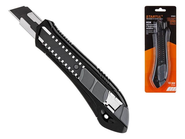 Главная » Ручной инструмент » Общестроительный инструмент » Ножи, скребки, шила » Нож пистолетный с выдвижным лезвием 18мм BLACK LINE STARTUL (ST0923) (черное лезвие)
