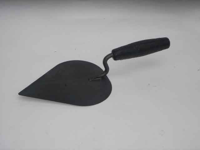 Кельма бетонщика имеет рабочее полотно треугольной формы. Используется при кладке кирпича, а также для отмеривания и нанесения цементного раствора.