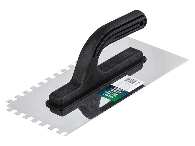 Главная » Ручной инструмент » Штукатурно-отделочный инструмент » Терки, гладилки » Гладилка нерж. 130х270мм зуб 8х8мм ВОЛАТ (для нанесения клея плиточного, клея для блоков)