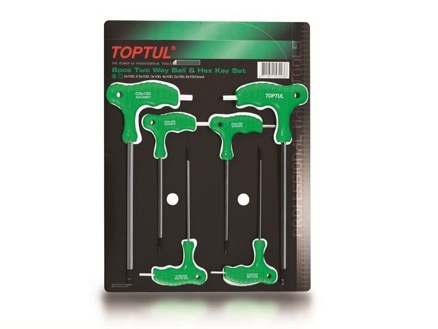 Набор ключей шестигранных L-Type TOPTUL состоит из 6 инструментов Г-образной формы с разнодлинными сторонами, предназначенных для откручивания и закручивания болтов с внутренним шестигранником размером 2, 2.5, 3, 4, 5 и 6 мм. Шарообразный наконечник на длинной стороне каждого ключа позволяет вставлять инструмент в шестигранник под углом к болту. Каждый ключ имеет удобную прорезиненную ручку, исключающую выскальзывание инструмента. Рекомендуется для профессионального использования.