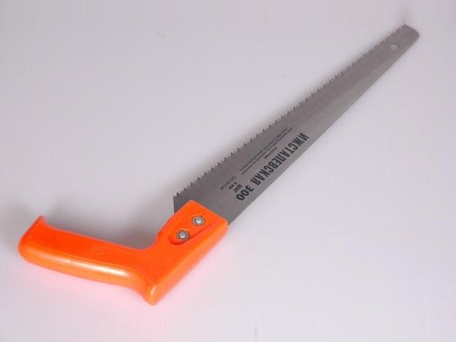 С пластмассовой рукояткой, с универсальным зубом для продольного и поперечного высокопроизводительного распиливания.ГОСТ 26215-84