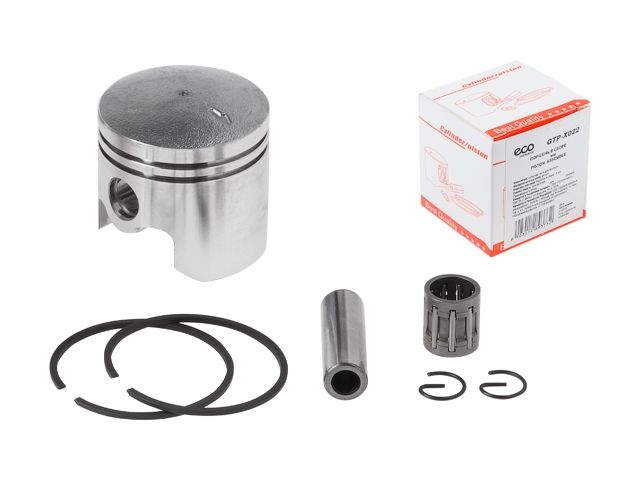 Поршень 44мм - 1шт, поршневые кольца - 2шт, палец - 1шт, стопорное кольцо - 2шт, игольчатый подшипник -1шт;