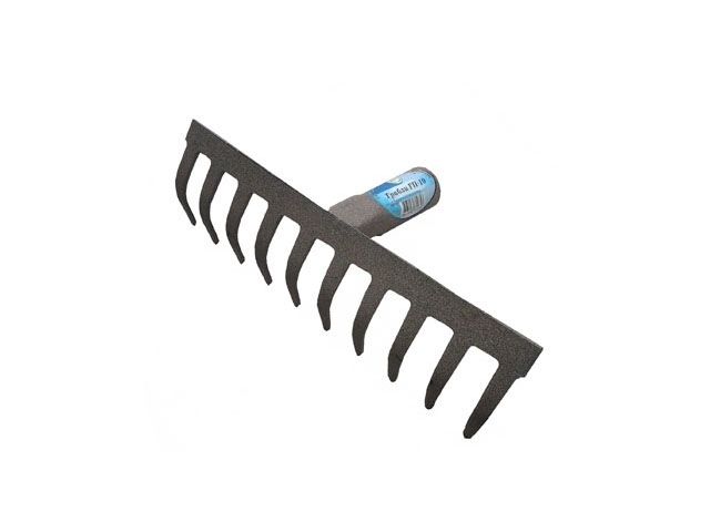 Без черенка, порошковая окраска, толщина зуба (S=3mm), диаметр тулейки 30мм, материал - сталь, тип зубьев - прямые, кол-во зубьев - 10. Назначение: подходят для работы на садовом участке для сбора сухой листвы, срезанных веток и других работ. Зубья имеют прямую форму, что позволяет с удобством убирать мусор.