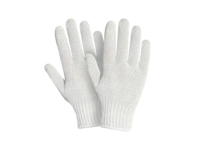 Перчатки рабочие трикотажные хб белые, без ПВХ покрытия, 4 нити, 155 текс, ручной оверлок, Ми