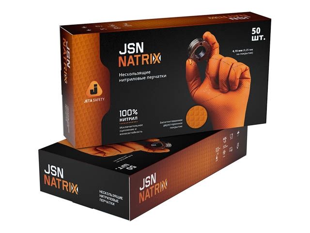 Оранжевые нескользящие нитриловые перчатки Jeta Safety модель NATRIX, длина 240мм, толщина 0,15мм, упаковка 50 шт. NATRIX - ультрапрочные нитриловые перчатки, специально разработанные для малярных и слесарных работ. Перчатки обеспечивают превосходную защиту от растворителей, масел и автохимии.