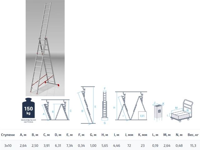 Главная » Строительное оборудование » Лестницы, стремянки, леса, подмости, мусоропровод строительный » Лестница алюм. 3-х секц. 250/631/264см 3х10 ступ., 15,3кг PRO STARTUL (ST9942-10)