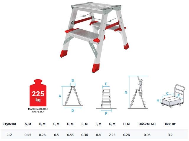 Главная » Строительное оборудование » Лестницы, стремянки, леса, подмости, мусоропровод строительный » Лестница-стремянка алюм. двухст. 45 см 2 ступ. 3,6кг NV 3127 Новая высота (Макс. нагрузка - 225 кг.) (Новая Высота)