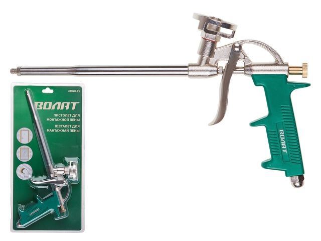 Назначение: применяется для нанесения монтажной пены, обеспечивая намного более точное дозирование и аккуратное ее нанесение; к тому же пистолет предохраняет содержимое баллона от быстрого затвердевания, позволяя тем самым использовать один баллон спустя значительный промежуток времени (при условии, что он останется подсоединен к пистолету, а клапан подачи пены на пистолете будет перекрыт и не будет доступа кислорода);