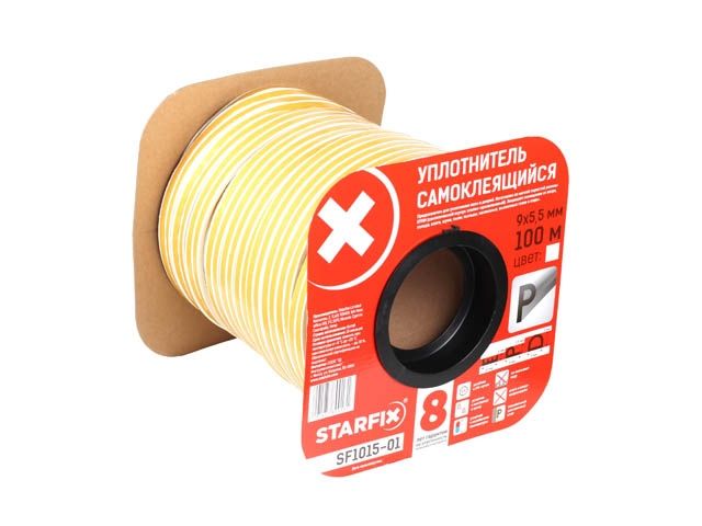 Товары похожие на Уплотнитель "P" белый 9х5,5мм 100м (сдвоенный профиль 2х50м) STARFIX