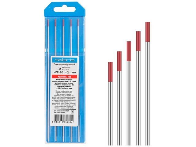 Главная » Сварочное оборудование и материалы » Электроды » Электроды вольфрамовые » Электрод вольфрамовый красный WT-20, Ф 2,4 мм (набор 5 шт) SOLARIS