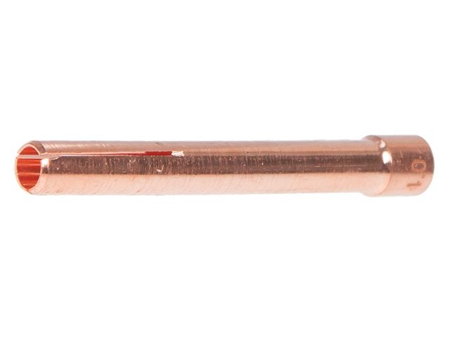 Зажим цанги является расходным элементом TIG горелки. Предназначен для фиксации электрода с цангой в TIG горелке. Отверстия на зажиме служат для распределения потока защитного газа.